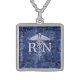 Registered Nurse RN Caduceus on Blue Camo Sterling Silver Necklace