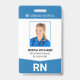 A badge for nurses including photo, name, ID number and certification code. This badge is ideal for medical staff such as registered nurse RN, Licensed Practical Nurse LPN, Nurse Practitioner NP or Intensive Care Unit ICU. This modern employee identity badge will also work well for staff in elder care and nursing homes. Please note that the certification code such as RN, LPN, PN or ICU are also shown on the back of the badge.