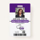 Hospital Registered Nurse RN employee, stethoscope and barcode purple photo template id badge. Personalize this medical staff photo ID card badge with your name, ID, title, hospital name and barcode. Add more information on the back.