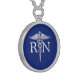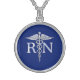 Registered Nurse RN Silver Caduceus Navy Blue deco Sterling Silver Necklace