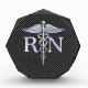 The Symbolic Chrome Like Registered Nurse RN Caduceus Medical Symbol design presented here on a printed black carbon fiber background. The caduceus snakes is designed to look like it is made of chrome. Good for a graduation occasion, a statement for your profession, or for a gift with that medical look your are looking for.