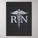The Symbolic Chrome Like Registered Nurse RN Caduceus Medical Symbol design presented here on a printed black carbon fiber background. The caduceus snakes is designed to look like it is made of chrome. Good for a graduation occasion, a statement for your profession, or for a gift with that medical look your are looking for.