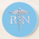 Registered Nurse RN Silver Like Caduceus Baby Blue Coaster