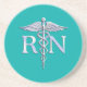 Registered Nurse RN Stylish Caduceus on Turquoise Drink Coaster