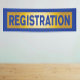 Registration banner for any event in elegant blue and gold with large bold letters for an attention getting sign above your check-in table.