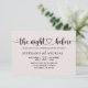 Celebrate your rehearsal dinner in style with this modern and sophisticated invitation. Featuring elegant black calligraphy stating ‘the night before’ alongside a charming heart detail on a blush pink background, this design is both simple and timeless. Easily customize it with your own details to make it truly your own.