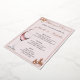 This is a rehearsal dinner invitation with 'Toast' artwork, shown in pale blush pink, with rose gold foil accents. This is genuine Italian foil, available in gold, silver, and rose gold. The foil accents include the rehearsal dinner banner, bride and groom's name, floral design, and a foil outline on the front. The reverse includes the bride and groom's name and heart artwork.