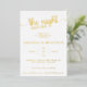 Elegant and sophisticated, this rehearsal dinner invitation features gold script calligraphy with a stylish, modern touch. The phrase "the night before" is beautifully written at the top, setting the perfect tone for an intimate pre-wedding celebration. The invitation is printed in gold foil on a classic white background. Ideal for formal or casual rehearsal dinners, this design is timeless and versatile. Customize it with the couple’s names, event details, RSVP information, and dress code for a seamless experience.