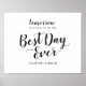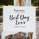 Simple Elegant Calligraphy Script Rehearsal Dinner Tomorrow will be the Best Day Ever Poster. A minimalist design in black and white or any background color you choose. Just click the customize further link, shown under the text personalization area on the right, and choose your custom color background. This sign poster template makes it fast and easy to create stunning additions to your wedding decor. Signs can be enlarged, there are many sizes to choose from, as well as options for custom framing and matting.