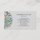 This reiki master's business card is decorated with a colorful mosaic tree of life design on a pale gray background.
