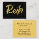 * Mighty Size - Reiki Master or Reiki Practitioner Gold Glitter word REIKI on black background business card.*