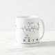 Reina spelled out in amino acids as R E I N A (Arginine Glutamic acid Isoleucine Asparagine Alanine) on a mug for the scientist in you.