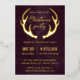 Reindeer Antlers Modern Burgundy Christmas Party Foil Invitation