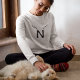 Simpe, Stylish Christmas Reindeer Antler custom Initial womens sweatshirt with two silhouette deer antlers in black over a single letter in modern minimalist typography. The letter can easily be personalized with the initial of your loved one as the perfect festive gift.