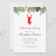 Invite your holiday party guests in style with this elegant hand painted watercolor reindeer silhouette in red with pine branches and holly berry border Christmas party invitation.