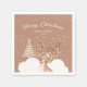 Celebrate in style with this cute modern reindeer Christmas party paper napkins featuring white falling snow, christmas tree, string lights and deer design. Perfect for holiday gatherings. Matching items in my store UnuqieDesigns.