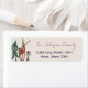 A cute Christmas label with a reindeer animal deer and a holiday tree. Original artwork by Caroline Bonne Müller