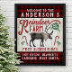 Decorate your home for Christmas with this personalized reindeer farm sign poster. This vintage-looking sign says, "Welcome to the (Your Name) Reindeer Farm / Family-Owned / Free Sleigh Rides / Hot Cocoa - Blankets - Caroling - Meet Santa." All text can be customized through the easy templates except "Reindeer Farm." The sign as a red black buffalo plaid border on top and bottom, plus an antique-looking faux wood center. It also includes a reindeer, candy canes, and mistletoe. Choose your own poster size and shape. DESIGN TIP: You can "customize further" to resize and rearrange all elements separately. You can also change fonts. Contact FancyCelebration store for design help.