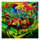 A.I. created interpretation of vibrant colors and geometric shapes form a captivating scene of deer in a valley amid cubist forest landscape.