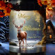 A modern Christmas wine label featuring a reindeer in a river landscape with gold stylized stars. The gold text is on a separate image and can be deleted if you prefer custom text.