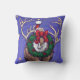 Cute Reindeer holiday throw pillow features our original artwork of a reindeer decked out for Christmas with a bright red and white Santa Claus hat perched between a big rack of antlers. This humorous reindeer stands in a snowy landscape with a textured starry night sky and a fun blue and orange wavy border behind. On many of our unique gifts and accessories you'll find the fun reindeer coming and going with the reindeer's head on one side and the reindeer's backside on the other. This holiday loving caribou is wearing a holly wreath with a bright red bow on his behind. Share a smile today with that reindeer lover, caribou lover, animal lover, wild animal lover, fun artwork lover on your gift list this holiday season.