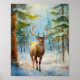 A modern art painting of a reindeer standing gracefully in a snowy winter forest landscape, featuring expressive brushstrokes, soft atmospheric lighting, and a serene seasonal mood. This elegant wildlife artwork captures the magic of winter and the quiet beauty of nature, making it perfect for holiday greeting cards, wall art prints, seasonal home décor, and meaningful gift items. Its timeless style and tranquil palette appeal to nature lovers, winter enthusiasts, and anyone looking for a striking yet peaceful piece for Christmas or year-round gifting.