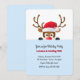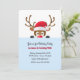 An adorable invitation to a Christmas Season birthday party. The card features a reindeer wearing Santa's cap peeking over a soft-blue edge. (<a href="https://www.freepik.com/free-vector/reindeer-in-santa-hat-peeping-out_1430479.htm">Designed by Freepik</a>). <br/><br/>The card is easy to customize with your wording, font andfont color.<br/><br/>Not exactly what you're looking for? All our products can be custom designed to meet your needs at no extra charge.<br/><br/>Simply contact us at askcottonlamb@gmail.com.<br/><br/>Coordinating products available: Just ask us!
