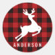 Reindeer Monogram | Deep Red Buffalo Plaid Classic Round Sticker