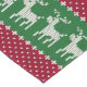 A playful faux-knit design featuring rows of white reindeer marching across festive red and green stripes. Classic Christmas sweater style for cozy cheer.