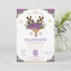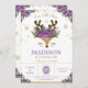 Reindeer Purple Floral Snowflakes Birthday Party Invitation