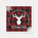 The product design features a silhouette of a reindeer on a classic red and black buffalo plaid pattern. Combined with your own personalized text, this composition makes farmhouse country-style, modern, and unique paper napkins for Christmas holiday or any other winter parties.