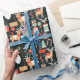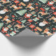 Reindeer Santa Tree Pattern Christmas Black Wrapping Paper