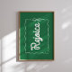 Minimalist holiday poster with “Rejoice” script lettering in white on green background, framed with a simple bow. A clean and modern Christmas wall decor piece celebrating the season.