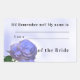 Guests will love wearing the "Relation to Bride" name tag sticker! Design features lovely lavender roses in left corner with a dusty mist of lavender throughout design. Customizable text reads, "Hi! Remember me? My name is" _________ "I am a _________ of the Bride". Guests will fill out their name and relation on the lines provided. A great idea especially for large weddings. Relation to Groom tags also available.