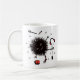 Lazy day monster mug with a fun illustration of a hairy cartoon character who decided to relax and leave everything aside - books, music, cooking and even drawing. This funny creature just lays and daydreams peacefully.