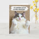 This card shows an overhead view of a long-haired cat stretched out on its back, centered on a softly textured warm beige background. Its fluffy white coat is accented with smoky gray patches around the head and ears, giving it a cozy, cuddly look. The cat’s front paws are lifted in a gentle, inviting pose, like it’s asking for a soft hug or sharing a quiet moment of closeness ❤️. Bright yellow-green eyes gaze upward with a calm, knowing expression, paired with a small pink nose and rosy paw pads that add sweetness. Across the middle sits a brushed white banner with dark, thick lettering that reads, “IT’S MOTHER’S DAY SO LAY BACK AND RELAX!” The text runs horizontally and stands out clearly against the fur and background, like a friendly note laid right over the scene. Soft, diffused lighting smooths the shadows and makes the fur look extra plush, adding a tender, restful mood 🌼. The beige backdrop stays simple, with faint texture visible around the cat’s outline and the centered banner.