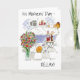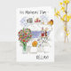 A handpainted watercolour painting for Mother's Day with a woman relaxing in a bubble bath with a good book, wine, candles, flowers and music. Blank inside for your own message