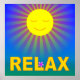 A large and colourful poster with a big smiling sun and beneath it the word 'relax'. Designed to bring calmness and a warm feeling.