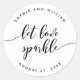 Wedding favor sticker featuring the words "let love sparkle" in a relax cursive script in black against a white background.