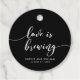 Wedding favor tags featuring the words "Love is Brewing" in a relax cursive script in white against an editable background color (click customize to change both sides color).