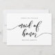 Stylish Will You Be My Maid of Honor card featuring the words "maid of honor" in a relax cursive script in black against a white background. Card has a black back side featuring overlapping white lines.