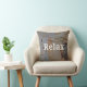 This throw pillow is adorned with a photograph that captures a hint of the beauty of this tree trunk and word "Relax" in which western font. The beige trunk features a knot of brown and gray. This paper thin bark folds and wrinkles as it encircles the tree in protection. The same photo is displayed on both the front and the back of this throw pillow perfect for your cabin or to match your rustic decor. Easily personalize "Relax" if you desire.