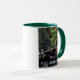 Coffee mug with green highlights, with photo reminding us to take life easy