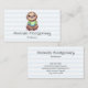 Business cards with an adorable illustration featuring a happy looking sloth wearing a green t-shirt. Sitting cross-legged in a relaxed meditation pose.