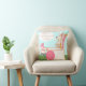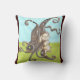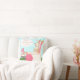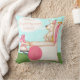 Art by artist Kristie Hubler on pillow -one side has bunny relaxing against a curly tree, and the other side has the Easter bunny relaxing in a bunny and egg style recliner with his pink bunny slippers on his feet, thinking, "Whew! I'm glad my work is done!"