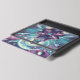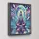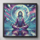 Medication wall tile. A beautiful serene relaxing ai illustration of a blue and purple scene with a woman medicating in front of the moon, planets, stars and galaxy to give you a peaceful vibe. Pretty for a meditation room or a yoga studio.