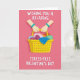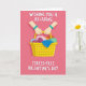 This card shows a bright yellow laundry basket filled with neatly folded clothes in light blue, deep purple, and soft pink. Two stylized hands hold the basket handles, and each wrist has teal bangles that stand out against the rest of the colors. The background is a solid bubblegum pink, giving the whole scene a warm, upbeat feel. The basket and fabrics look simple and tidy, with gentle shading underneath to add a little depth. In white, slightly textured lettering around the main image, the card reads, “Wishing you a relaxing, stress-free Valentine’s Day.” The message feels sweet and caring, like a reminder to slow down and take care of yourself ❤️💌🍫. Hope you can pass along some kindness and affection this Valentine’s Day.