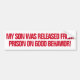 Released From Prison Good Behavior Funny Snarky Bumper Sticker