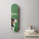 This skateboard has a minimalistic design with a solid green background and an Australian shepherd dog illustration. It is a great design for dog owners and lovers - especially Australian shepherd owners.