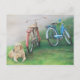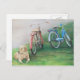 This postcard features a reproduction of my original acrylic and colored pencil painting of a yellow lab and bicyles.